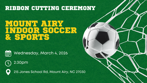 Join us at the Historic Jones Cultural Heritage and Innovation Center Museum as we celebrate the Grand Opening of the area’s only indoor turf soccer facility, operated by Mount Airy Indoor Soccer and Sports. The official Ribbon Cutting Ceremony will take place at 2:30 PM, marking an exciting investment in youth athletics, recreation, and community growth across our region.